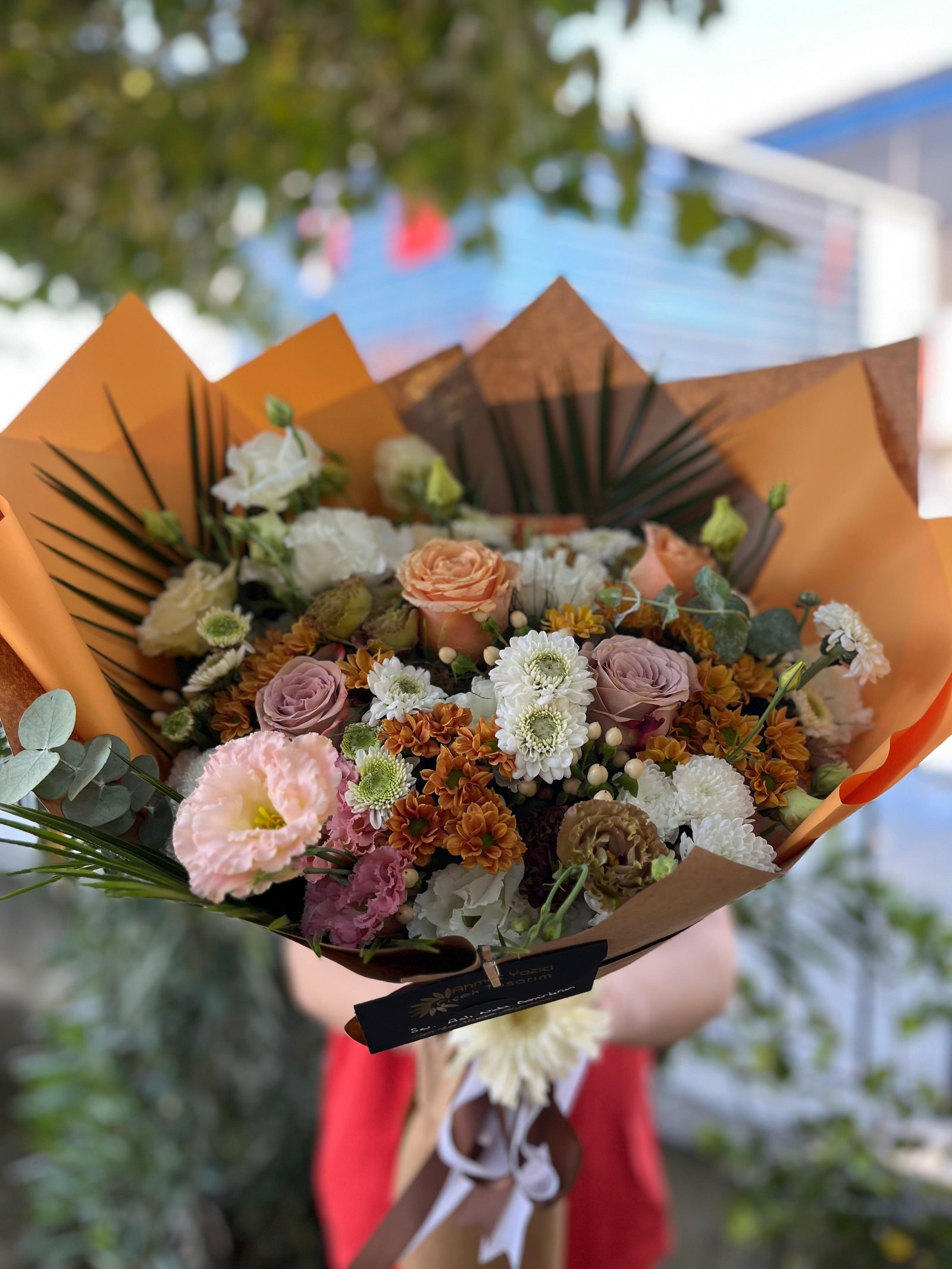 Papatya, gül, krizantem ve yeşilliklerin dengesi hem neşeli hem sıcak bir mesaj verir. Mevsimsel değişimlere göre tonlar güncellenir; buket her zaman canlı ve dengeli tutulur.