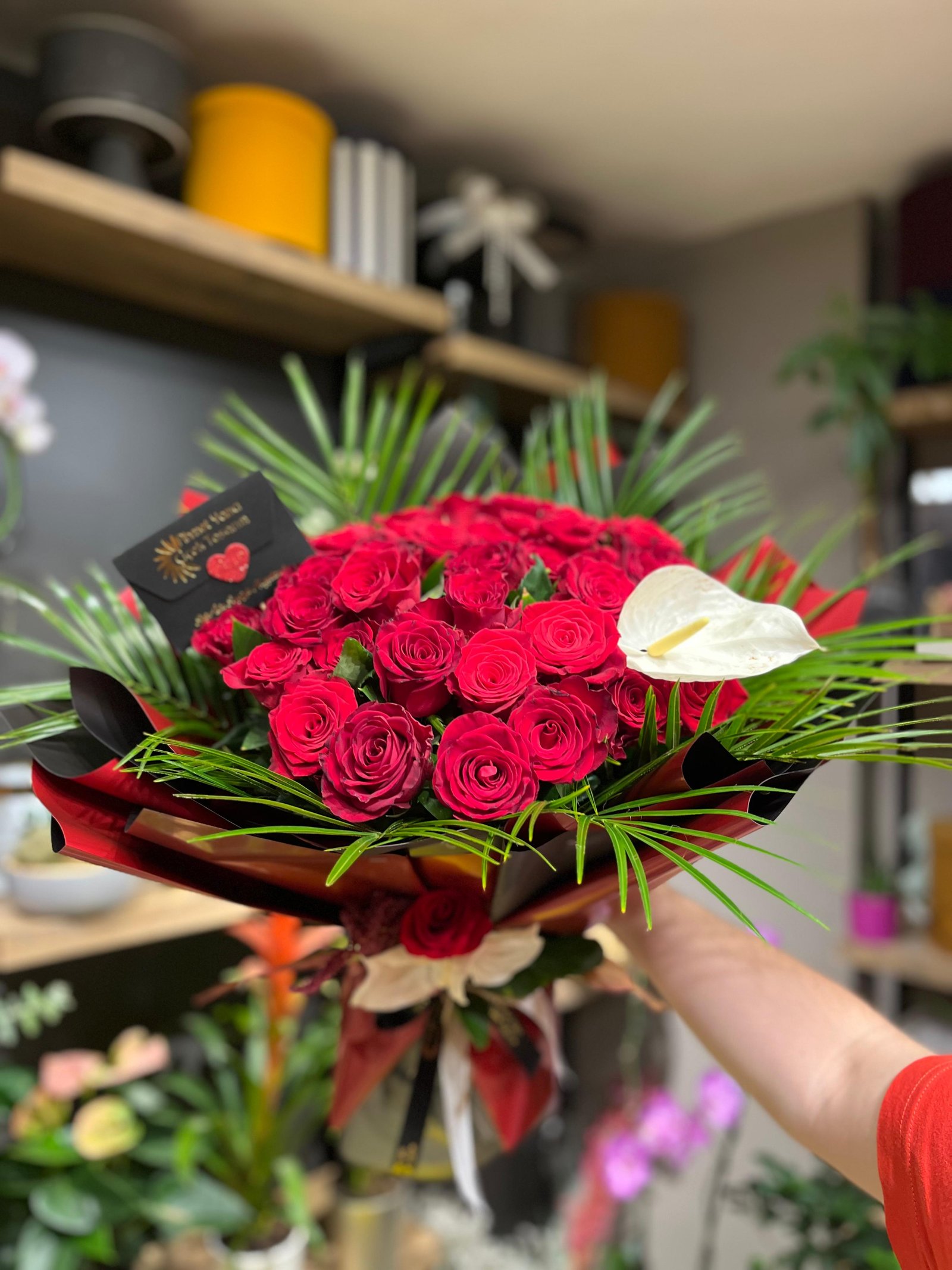 Kırmızı gül tutkulu bağlılığı, beyaz gül saflığı ve yeni başlangıçları, pembe gül ise şefkati ve minneti çağrıştırır. Buket oranı ve yaprak dokusu, uzun süre taze kalacak şekilde hazırlanır.
