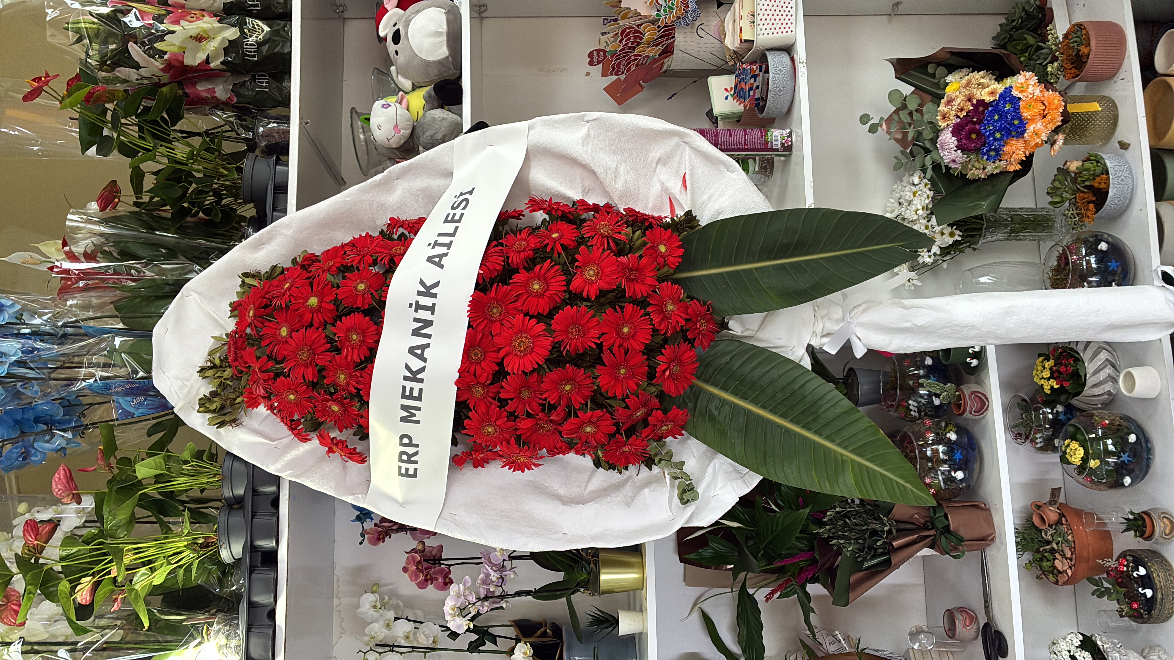 Yoğun çiçek dokusu ve dengeli yeşillik, tören alanında veya mekân girişinde sakin ama etkileyici bir duruş sunar. Her dal uyumlu seçilir; tazelik ve görünürlük önceliklidir.